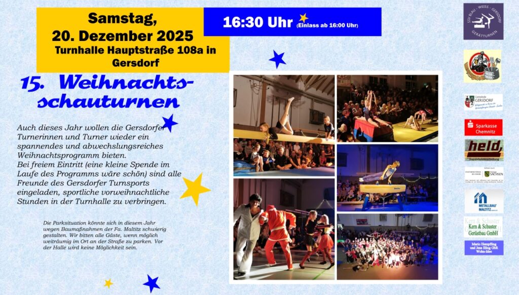 Kürturnen Grünhainichen am 26. November 2022 Zum traditionellen (Vor-) Adventsturnen in Grünhainichen sind die Gersdorfer Turnerinnen und Turner mit einer …